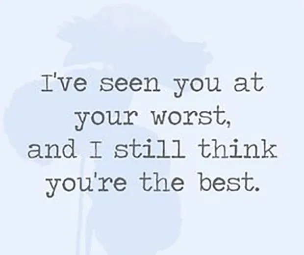 103. „Ich habe dich in deiner schlimmsten Form gesehen und denke immer noch, dass du der Beste bist.“