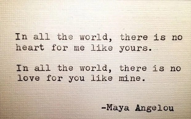 28. „Auf der ganzen Welt gibt es kein Herz für mich wie Ihres.“ Auf der ganzen Welt gibt es keine Liebe für dich wie meine.‘ — Maya Angelou