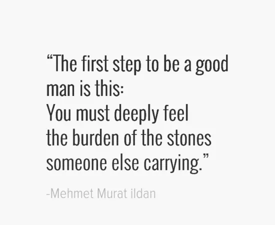 8. „Der erste Schritt, um ein guter Mann zu sein, ist dieser: Du musst die Last der Steine, die jemand anderes trägt, zutiefst spüren.“ — Mehmet Murat Ildan