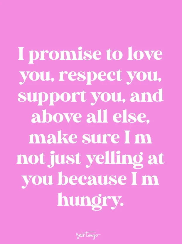 13. „Ich verspreche, dich zu lieben, zu respektieren, dich zu unterstützen und vor allem dafür zu sorgen, dass ich dich nicht nur anschreie, weil ich hungrig bin.“ – Gladys Canby