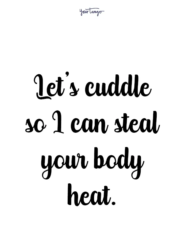 5. „Lass uns kuscheln, damit ich deine Körperwärme stehlen kann.“