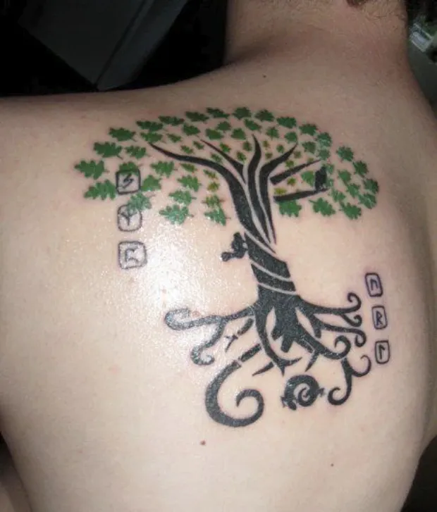 Runen-Tattoos gelten als hochwirksame, kraftvolle Symbole. Runen gelten in ihrer Grundform als Tätowierungen nominalistischer Art, das Hinzufügen von Verzierungen ist jedoch durchaus akzeptabel.