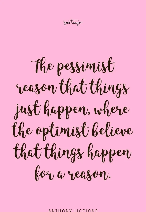 Der Pessimist argumentiert, dass Dinge einfach passieren, während der Optimist glaubt, dass die Dinge aus einem bestimmten Grund geschehen. – Anthony Liccione