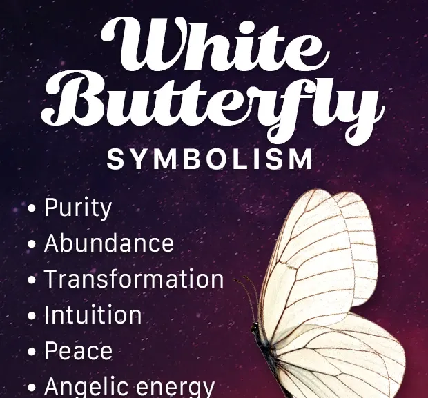 Weiße Schmetterlinge sind Symbole für Frieden, Reinheit, Erfolg, Fülle, Transformation, Neuanfang, Intuition, spirituelles Wachstum, Manifestation und engelhafte Energie. Der weiße Schmetterling ist es auch verbunden mit Ihrem dritten Augenchakra .